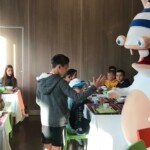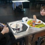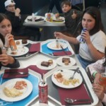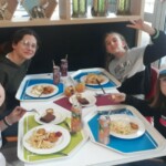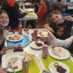 Nous nous sommes levés à 7h30 après une soirée spectaculaire. Bien en rang, tous les enfants sont partis prendre le petit-déjeuner. Il y avait du chocolat chaud, des croissants, du jambon, du beurre, du nutella… (Jeanne)