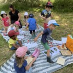 Nous réalisons aussi différentes activités comme faire le puzzle d’une feuille, dessiner un arbre, chercher des choses commençant par une lettre précise, fabriquer des formes géométriques ou l’alphabet avec des bâtons…